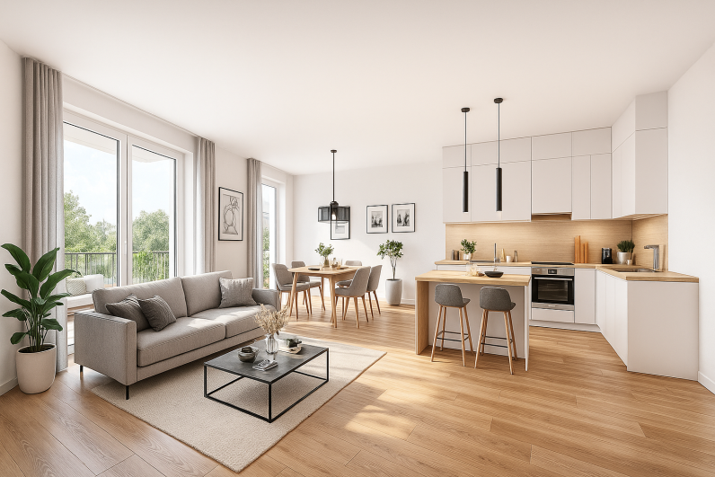 Hohe Heizkosten und kalte Duschen gehören der Vergangenheit an – in der Neubauwohnung in Oldenburg genießen Sie Wohlfühlkomfort zum kleinen Preis. Das Gebäude wurde nach höchstem energetischen Standard (KfW 40 QNG) errichtet. Eine effiziente Wärmepumpe in Kombination mit einer Photovoltaikanlage versorgt die Wohnungen ausschließlich mit regenerativer Energie – so profitieren Sie von dauerhaft niedrigen Energiekosten.